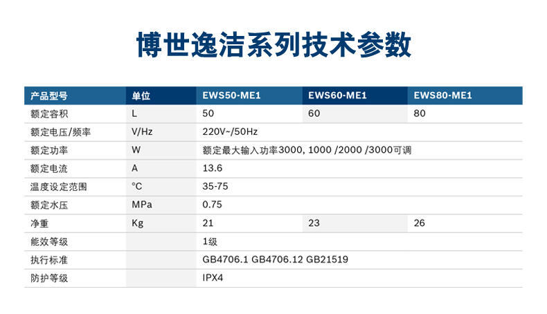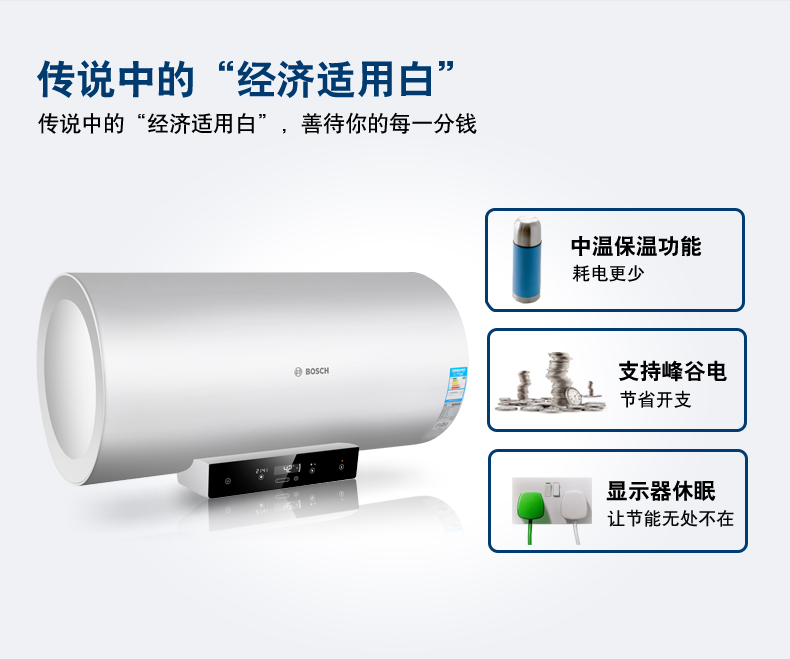電子式控制,觸摸按鍵??蛇x容積為50L/60L/80L。